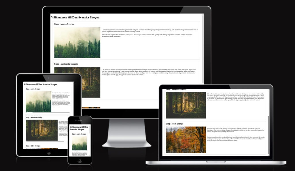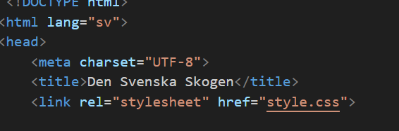 Senaste versionen av skogs sidan. Skillnaden mellan den senaste och den originala versionen är att jag har lagt till texter om vad bilderna är för något. Men jag hade satt att bild beskrivningarna var samma sak vilket det verkade som om de inte tyckte om. Jag har även lagt till ett språk på den senaste versionen av koden. det som är likt är att det är dålig kontrast mellan text och bakgrund vilket gör det svårt att läsa vad det står på hemsidan.