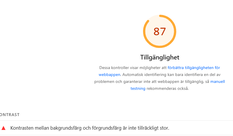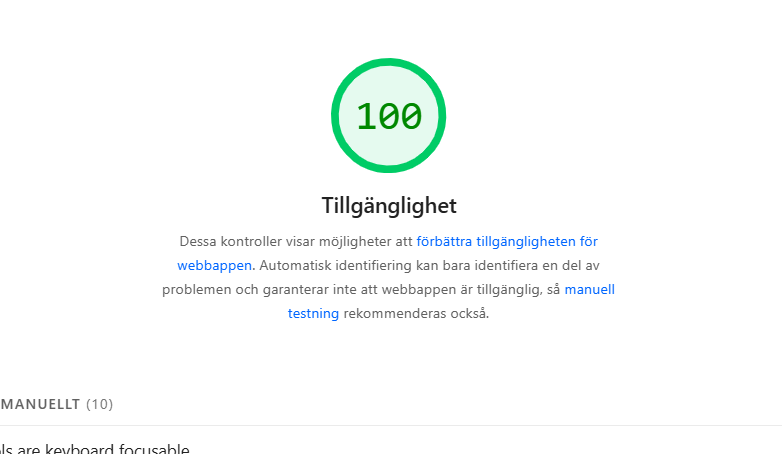 - Kolla tillgänglighet: https://wave.webaim.org/ och https://pagespeed.web.dev/?utm_source=psi&utm_medium=redirect.