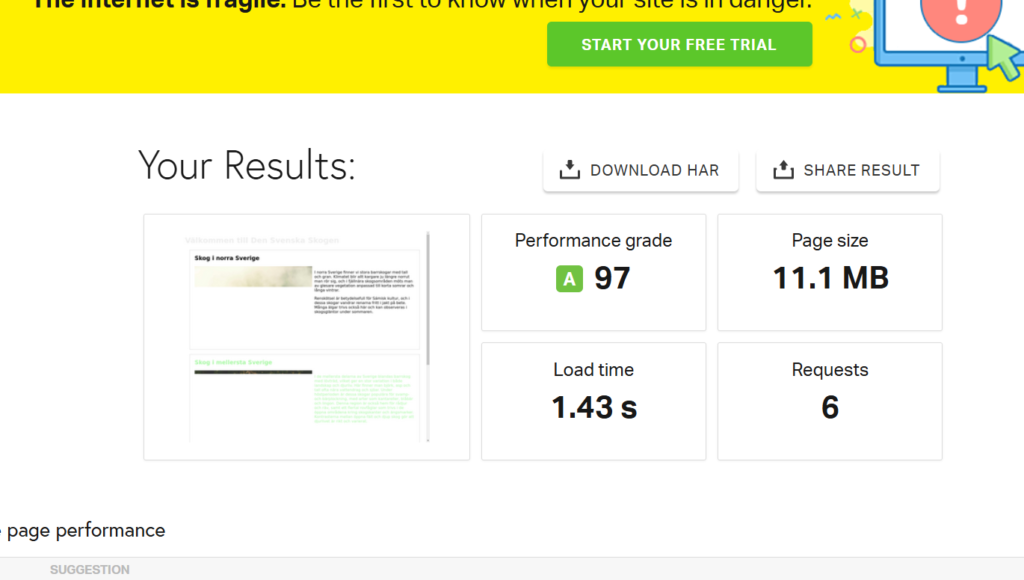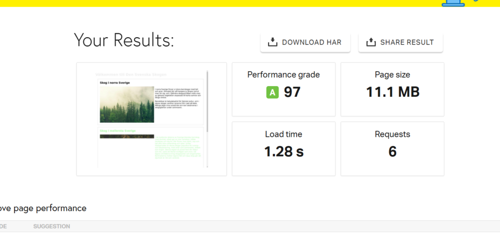 På ena sidan kan man se att in laddningstiden har gått ner efter att jag komprimerade sidan, men på den andra så verkar det inte ha blivit någon skillnad. Så jag antar att man kommer se större skillnad på ändringar på olika sidor.