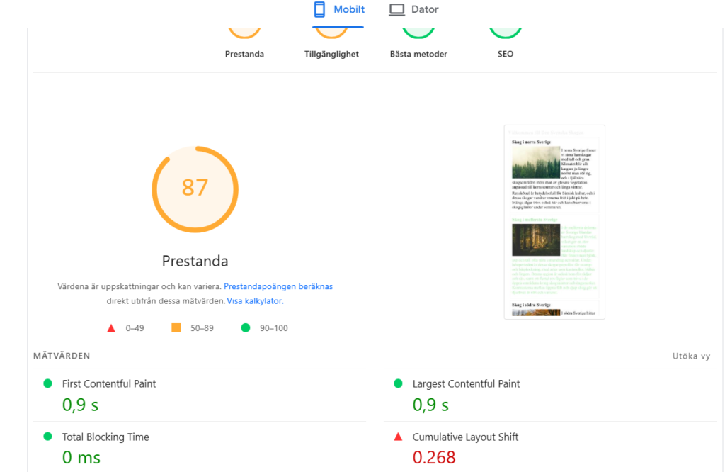 - Kolla prestandan: https://pagespeed.web.dev/?utm_source=psi&utm_medium=redirect och https://www.webpagetest.org/.