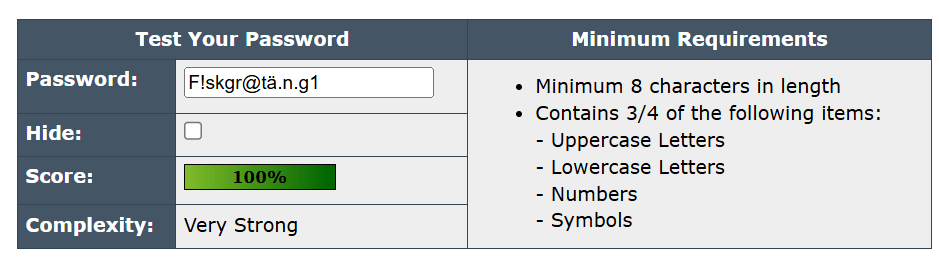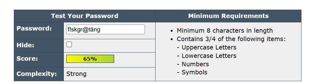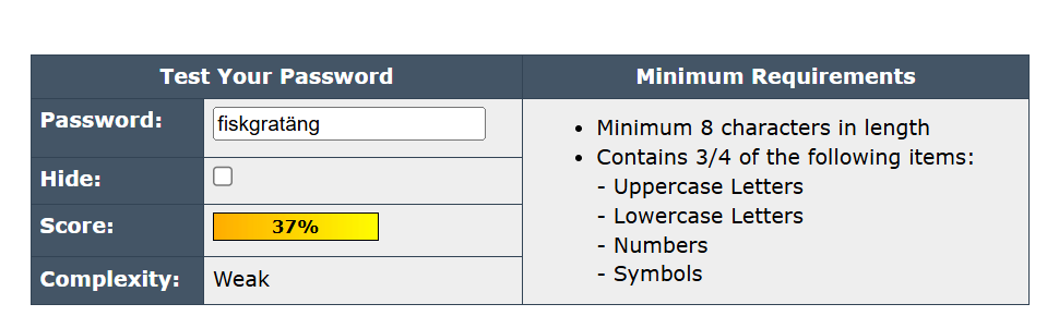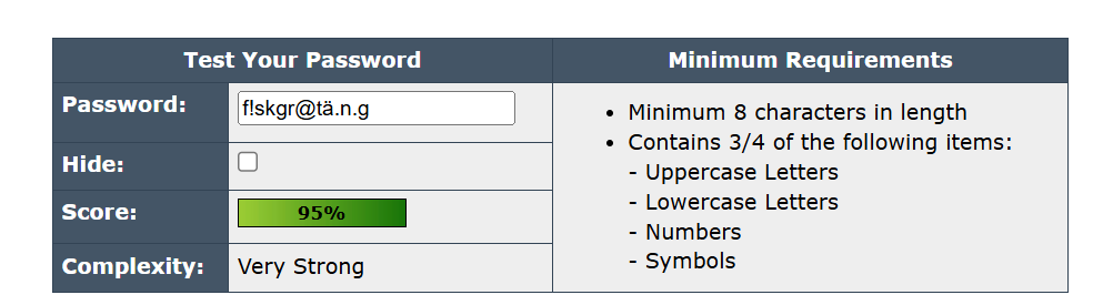 Lösenordet blev väldigt starkt efter att jag lade till två stycken punkter mellan de tre sista bokstäverna. Jag trodde seriöst inte att det skulle göra så stor skillnad från hur det var innan.