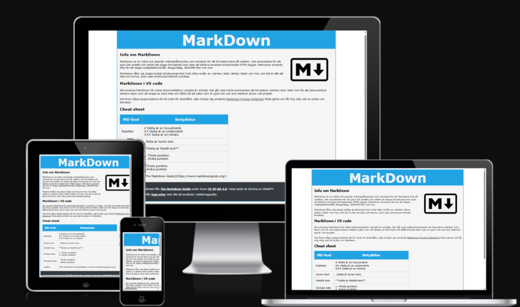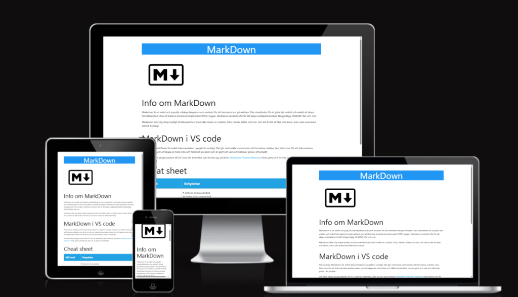 Före Den originala versionen av markdownsidan där jag hade min egna css var inte alls mobil vänlig. Så jag använde istället materialize ramverket och dess css för att lätt kunna bygga upp sidan för att få den mobil vänlig.