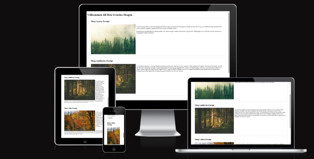 Före Sidan var från början inte särskilt mobil vänlig, men efter att jag använde media query så blev det mycket bättre. Alltså så bestämde jag hur sidan skulle se ut när skärmen var en viss storlek så att sidan skulle fungera lika bra på en telefon som på en dator.